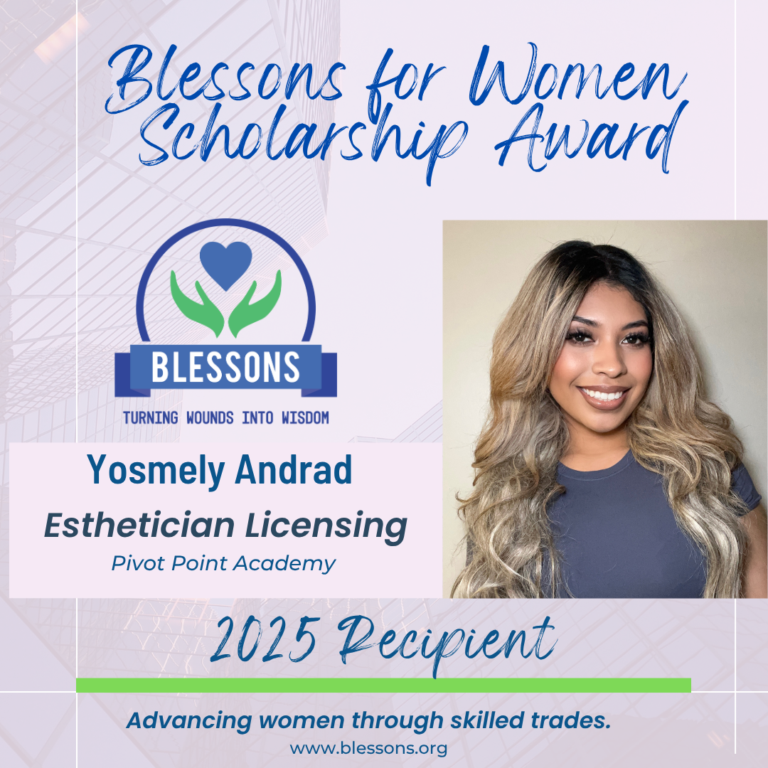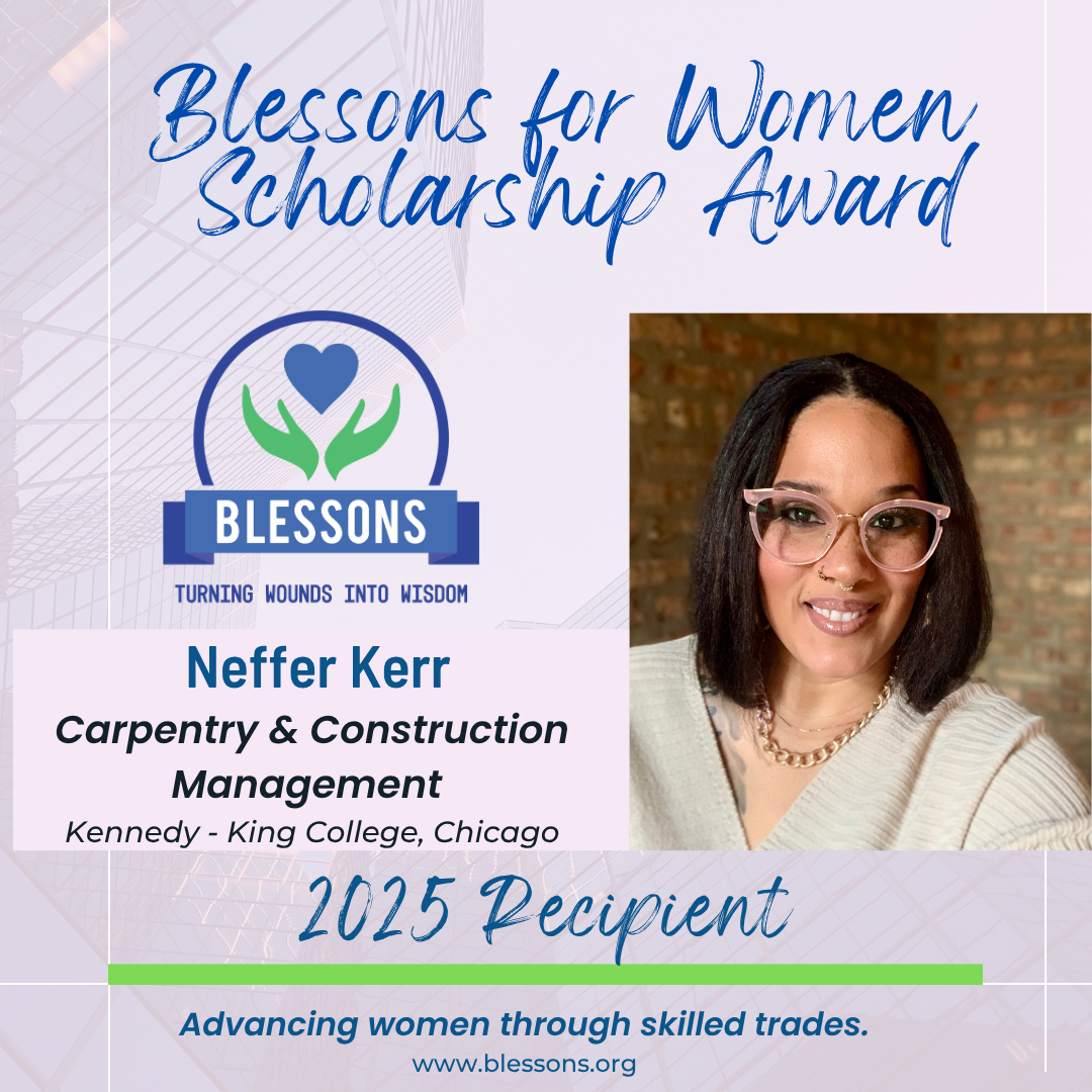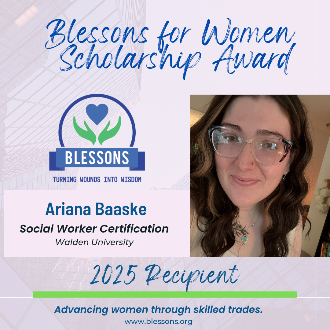 Funded by donations with an intent to provide scholarships to women 25 years of age or older who are need of resources in completing their education and advancing their career in skilled trades. Blessons Scholarships for Women Awards can help them fund their tuition expenses through community colleges, trade schools, vocational and tech programs. Assistance is also available for CE courses to maintain an active license or certification. Life gets in the way for a number of women. Challenging life lessons often places a hold on advancing professionally due to limited resources. Obtaining a skilled trade certificate, license or entering a program in order to advance economically, can be cost-prohibitive to do so.
